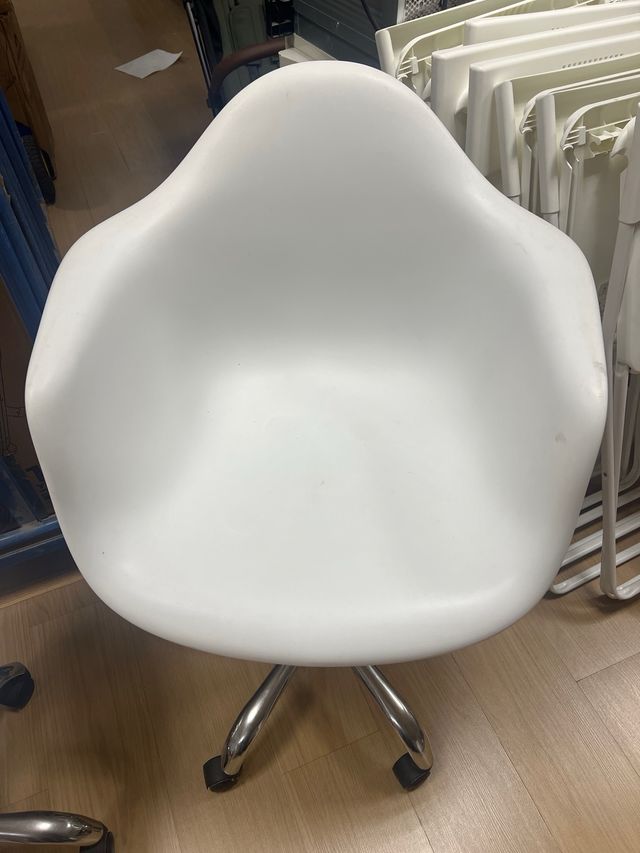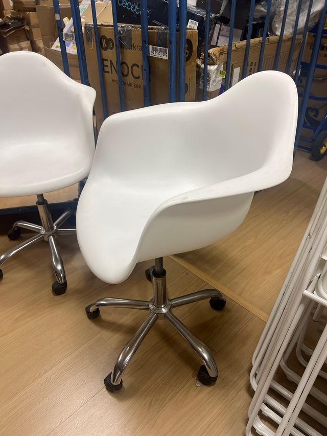 2 sillas de plástico blanco oficina con ruedas