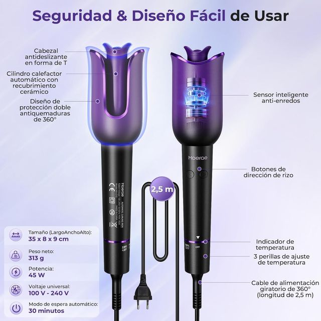 Rizador Pelo Moerae Automático Iones Negativos
