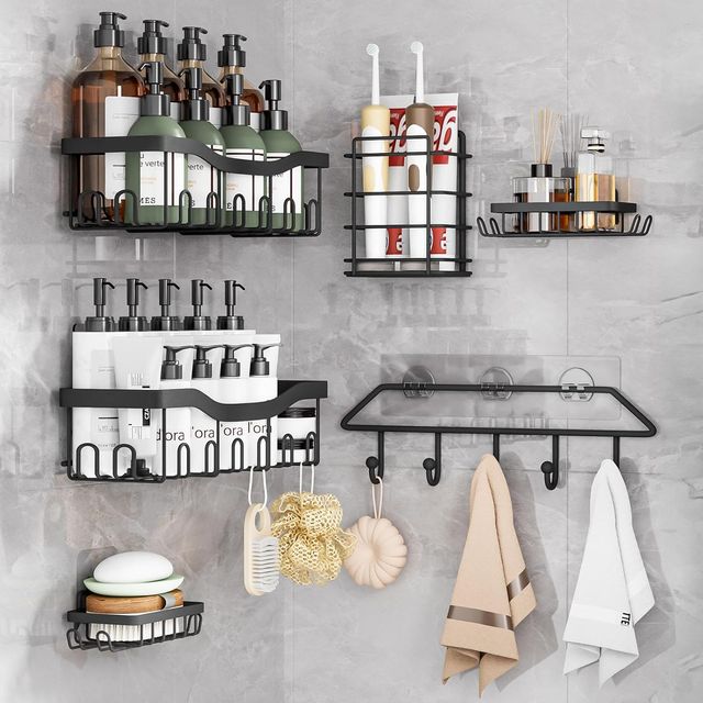 Organizador Ducha Sin Taladro 6 Piezas Negro