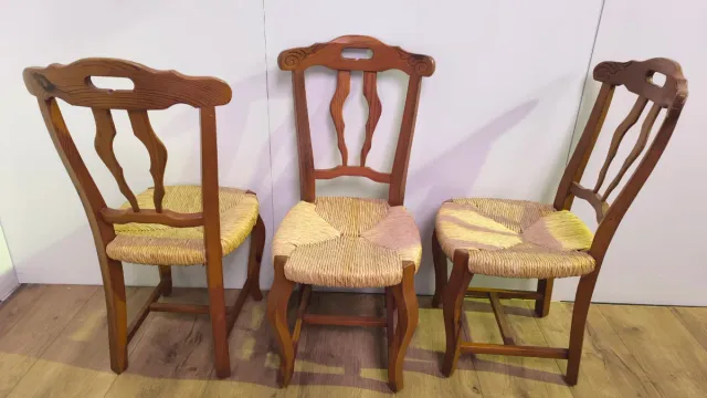 SILLAS RUSTICAS DE MADERA Y ENEA COMO NUEVAS