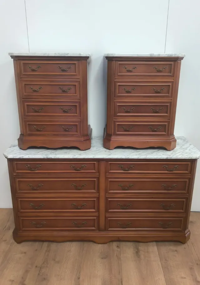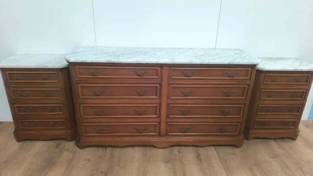 COMODA Y MESILLAS DE MADERA Y MARMOL