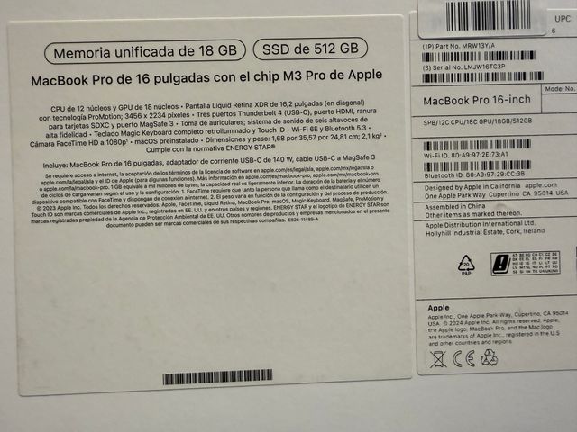 MacBook Pro 16 M3 Pro 18GB 512GB Garantía